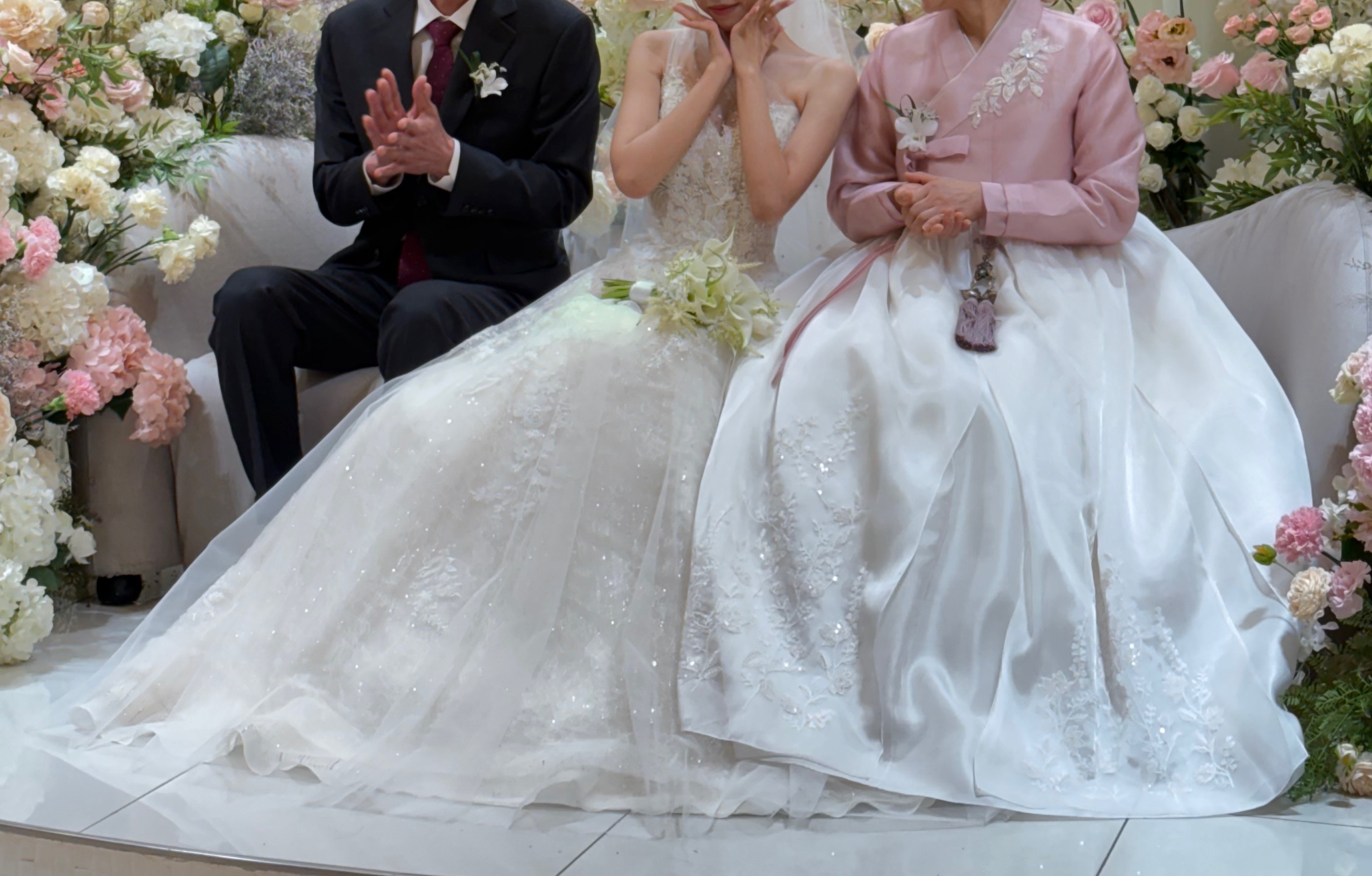 베틀한복 안산점에서 혼주한복 예쁘게 대여하여 25.09.06 예식 잘 마친 신부입니다