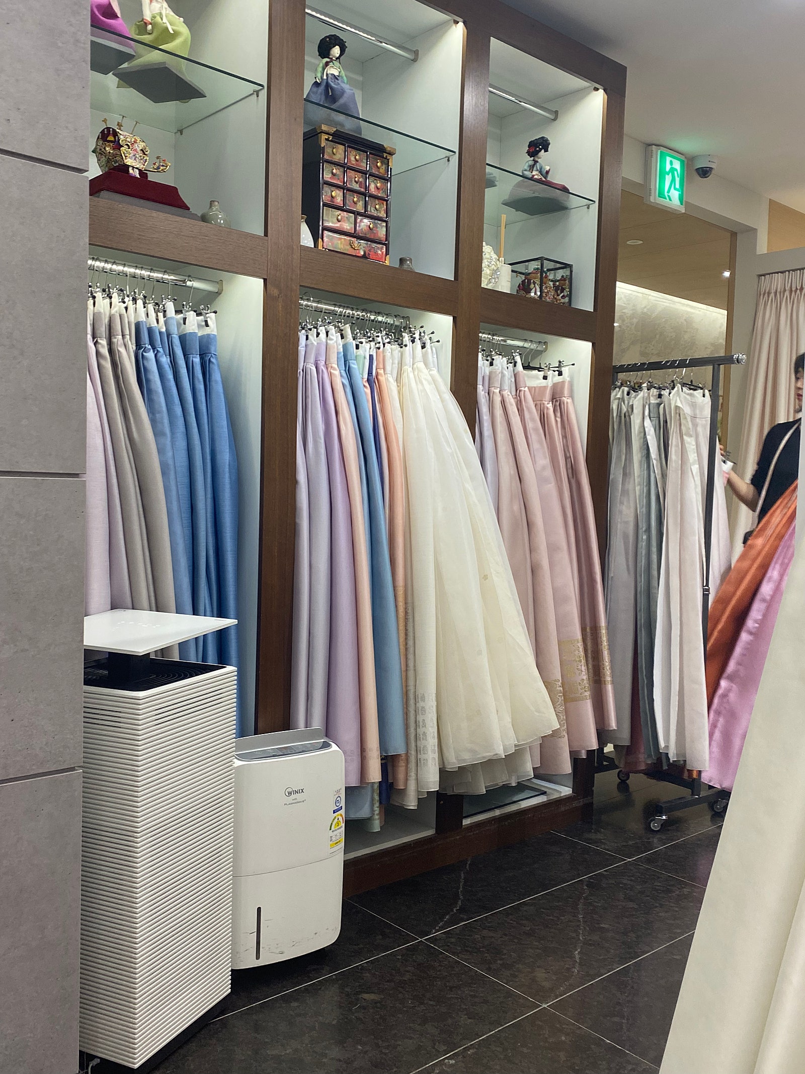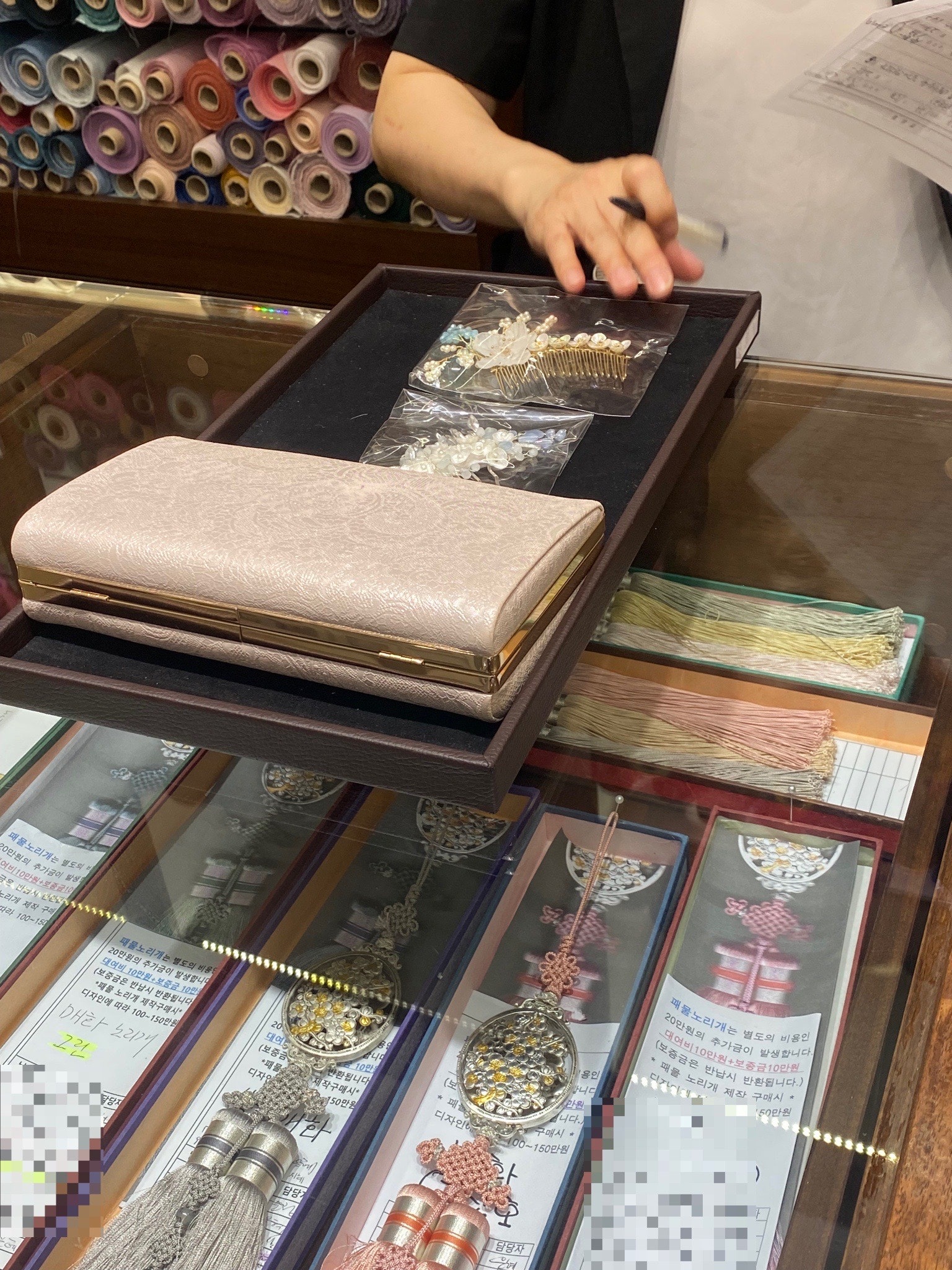 피팅룸에서 입어보고 매무새도 만져주시고 컬러감에 맞는 저고리를 선택하고 나서