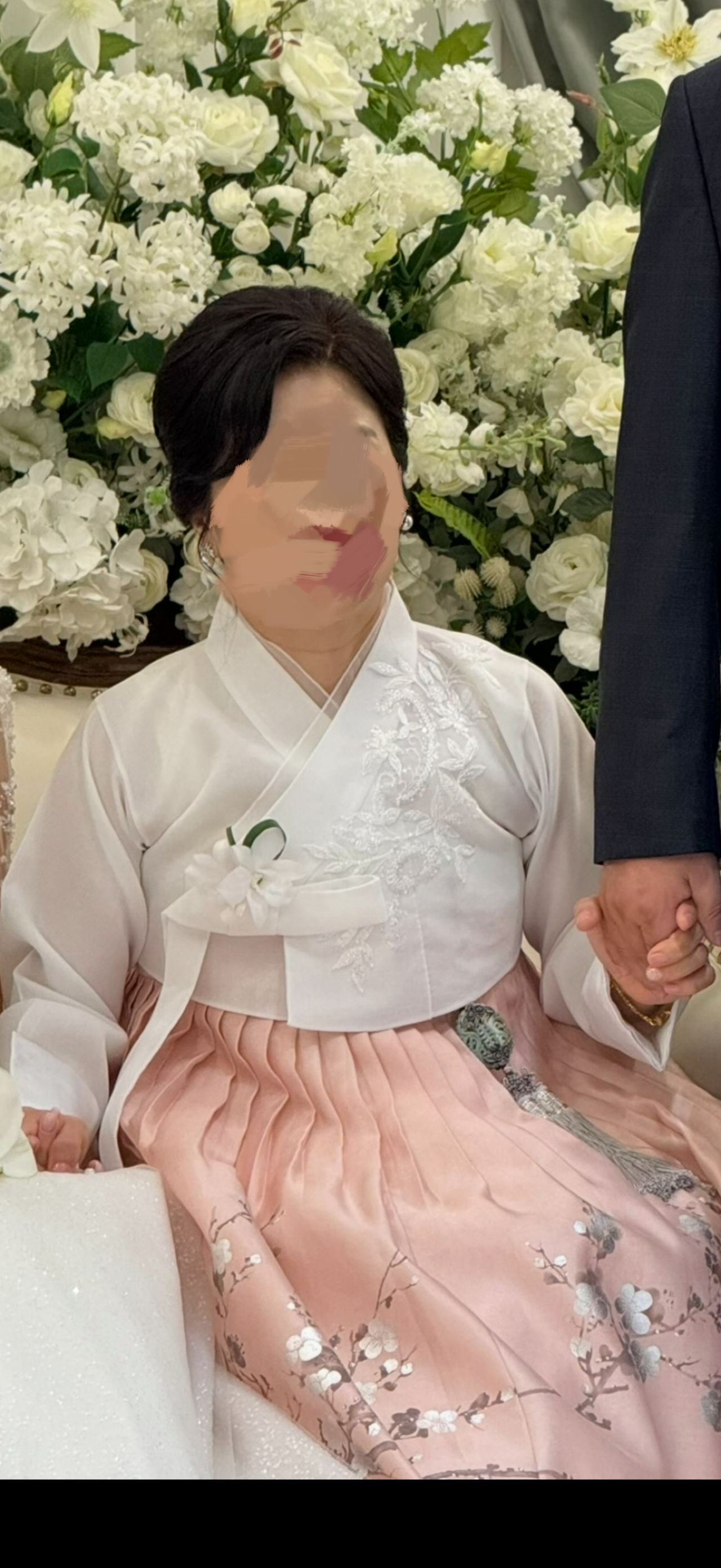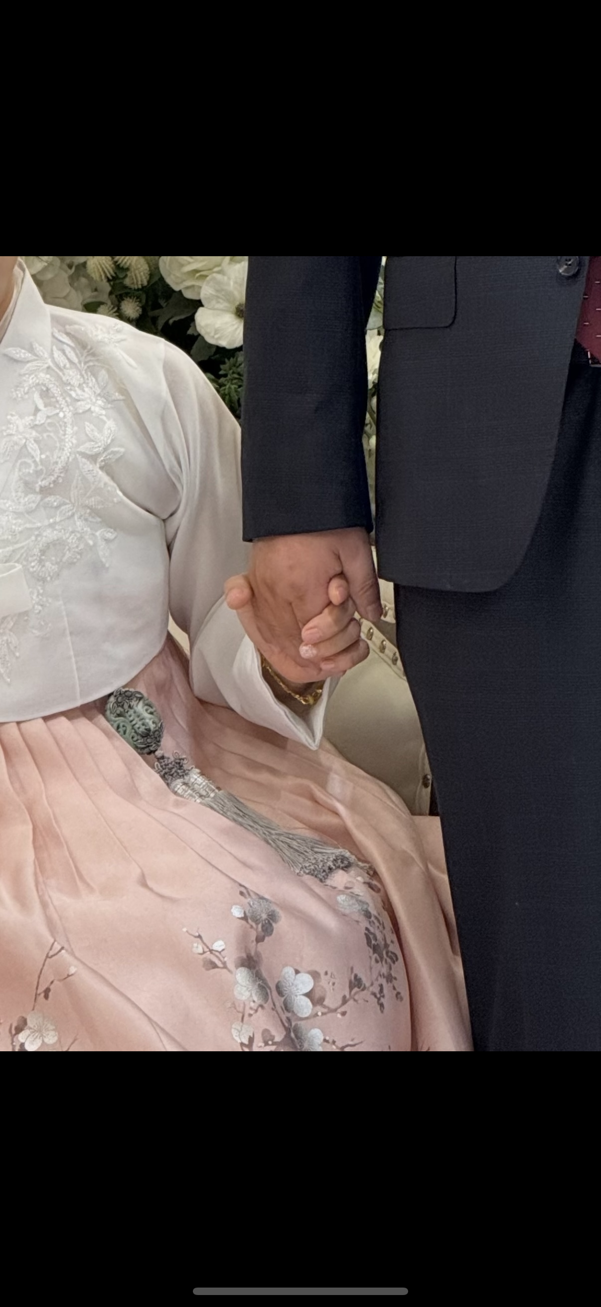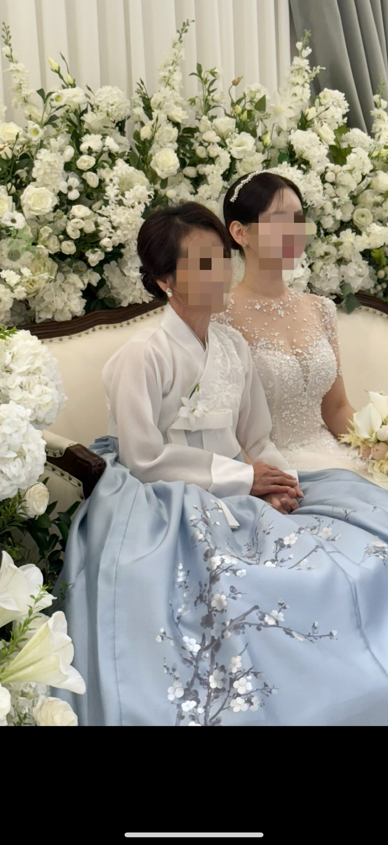 자수가 커서 혹여나 촌스럽진 않을까 고민많이했는데 본식날에 한복 예쁘다고 칭찬 되게 많이 들었습니다.