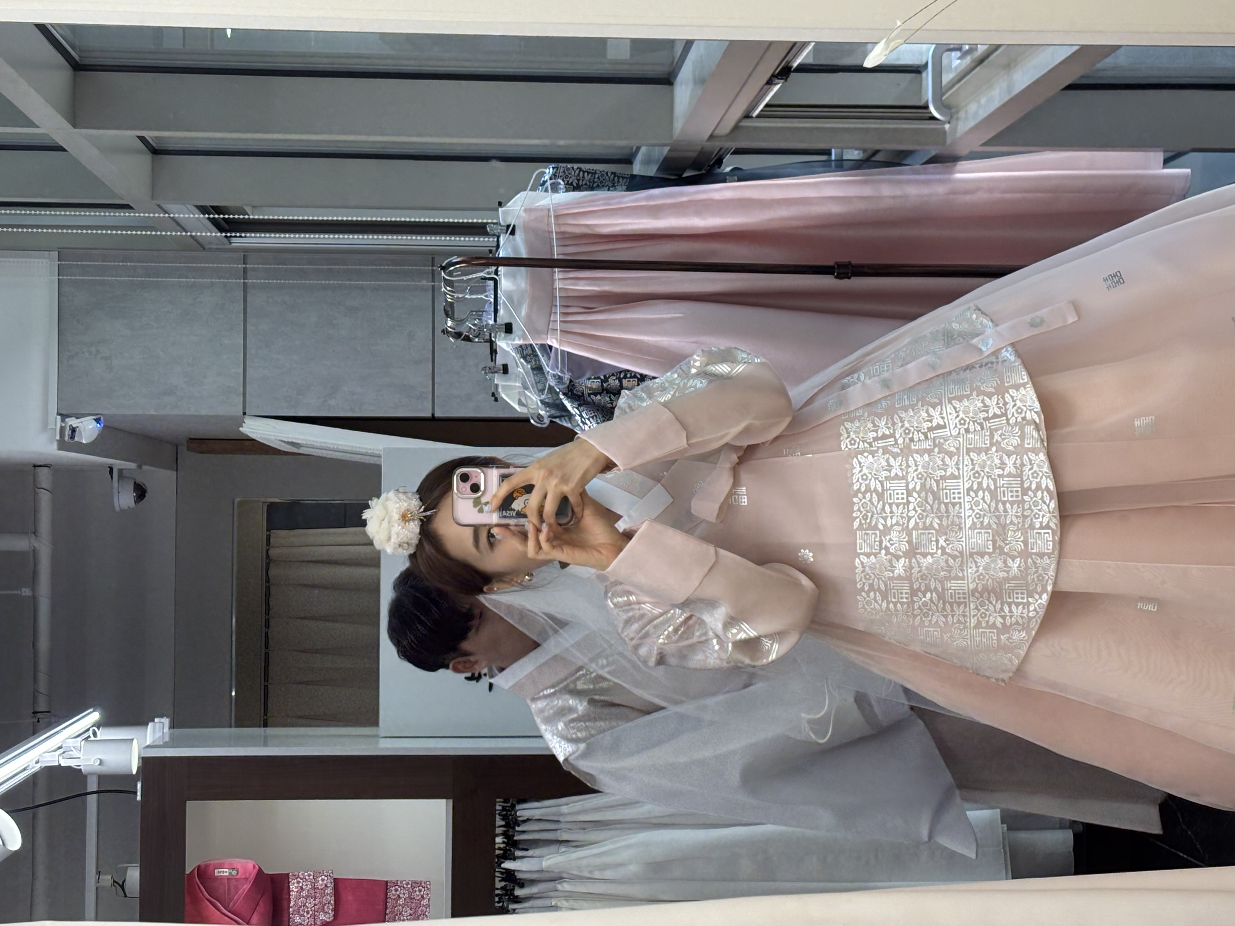 원하는 느낌으로 사진 가져갔는데 딱 알아채시고 비슷한 한복 추천해주셨어요.