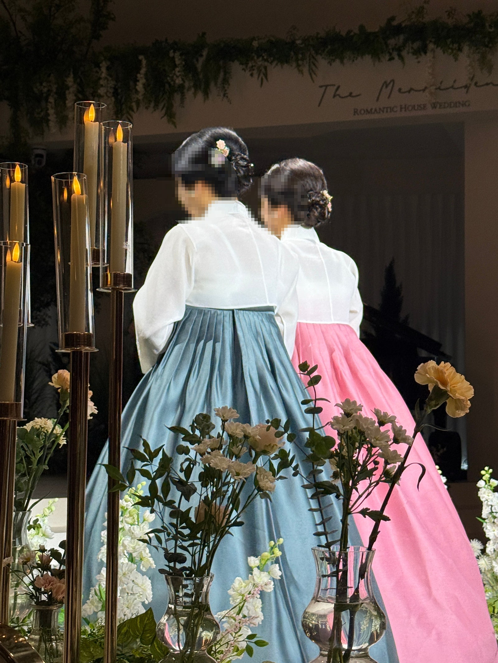 가장 감동적이었던 건 본식 당일 웨딩홀까지 오셔서 피팅을 도와주신 서비스였어요. 저고리 깃선이나 고름, 치마 퍼짐을 사진 찍기 좋게 정리해주셨고, 예식 후에는 바로 현장에서 반납까지 진행해주셔서 일정이 훨씬 편했습니다. 조명 아래에서 한복 색감도 너무 고급스럽게 표현되어 하객분들 반응도 좋았고, 부모님도 정말 만족하셨어요.