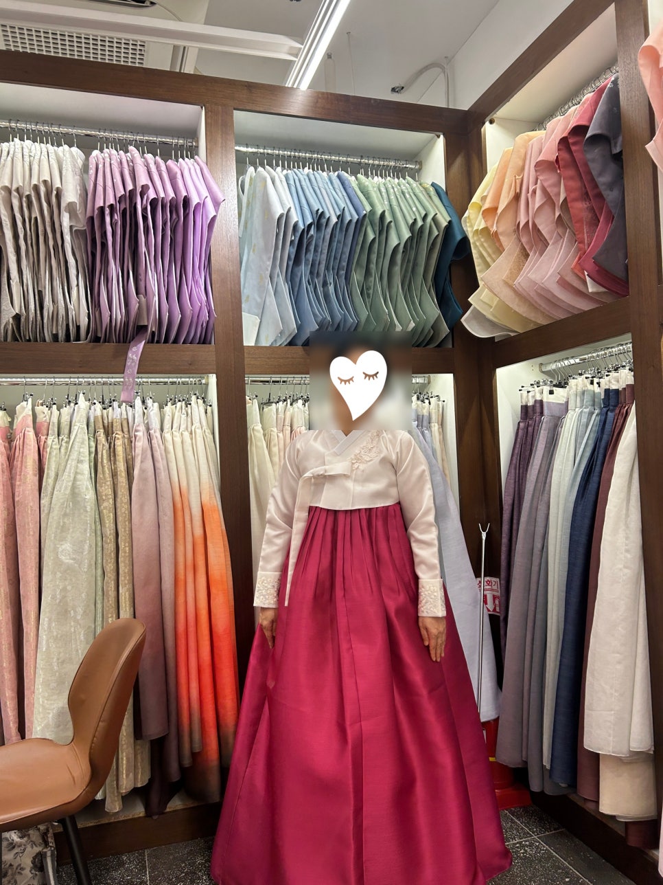 저고리 색이 얼굴에 잘 받는지 / 칙칙해지는지 등등 피팅 도와드리면서 설명해주셨다고 하더라구요!