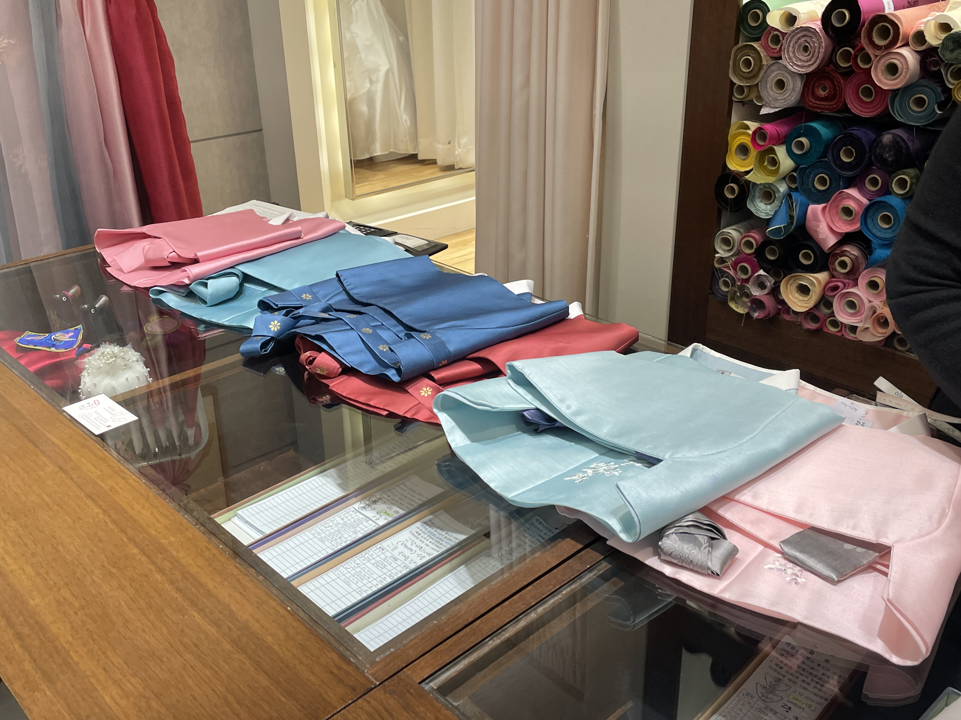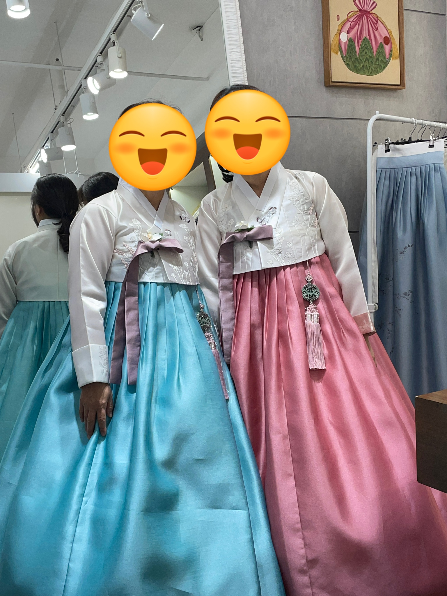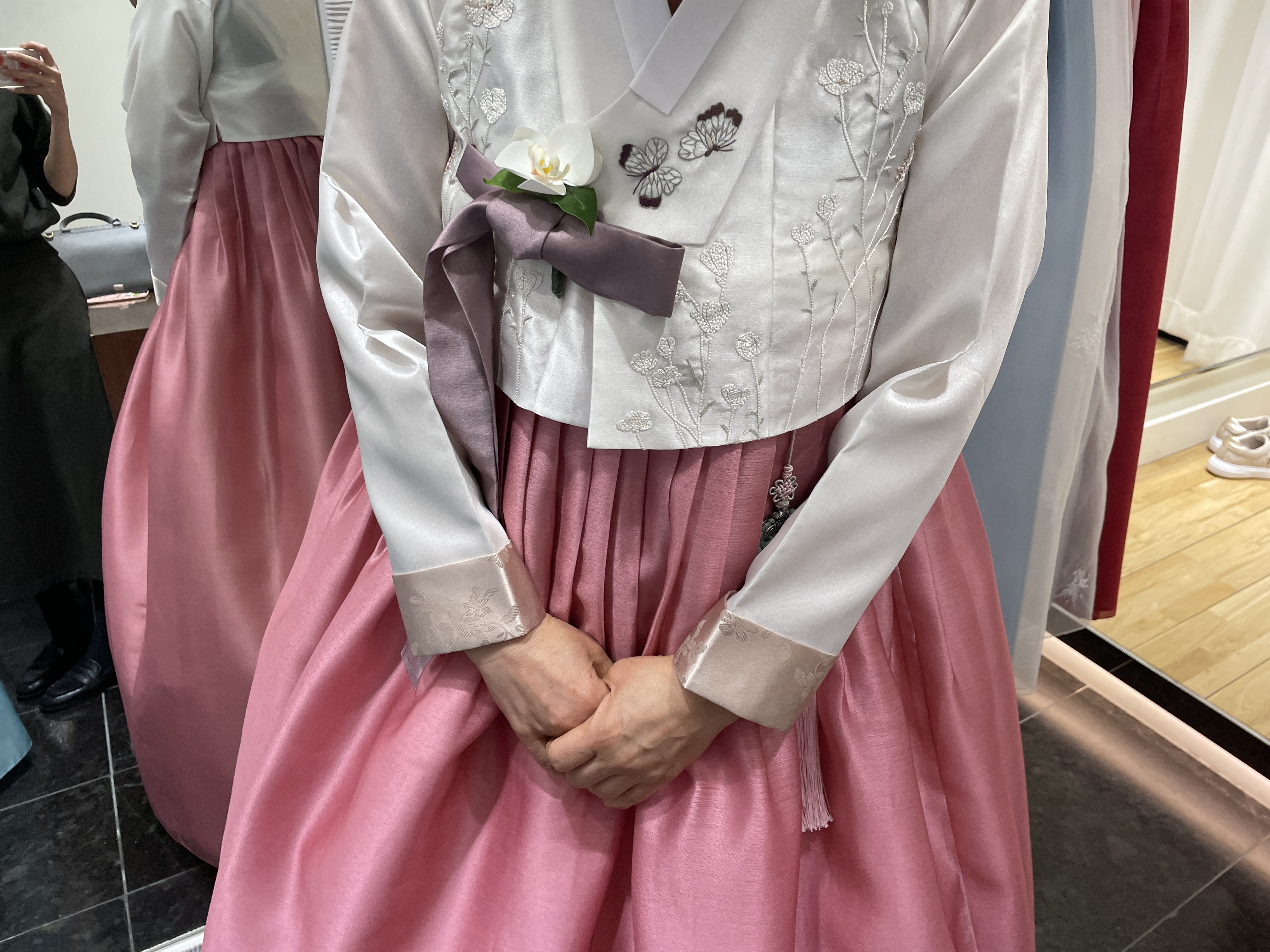 매장에 도착하니 베테랑 같은 분위기의 담당자분께서 밝게 맞아주시며 베틀한복에 대한 설명을 차근차근 해주셨습니다. 저와 예랑이, 그리고 양가 어머님들을 살펴보시며 전체적인 분위기와 취향을 파악하시더니 어떤 스타일이 잘 어울릴지 금방 감을 잡으시더라구요. 특히 어머님들께 먼저 편안하게 질문을 드리며 원하는 색감이나 느낌을 세심하게 체크해 주셨고, 동시에 제 예산 범위도 꼼꼼히 고려하면서 선택지를 제시해 주시는 모습이 아주 믿음직스러웠습니다.