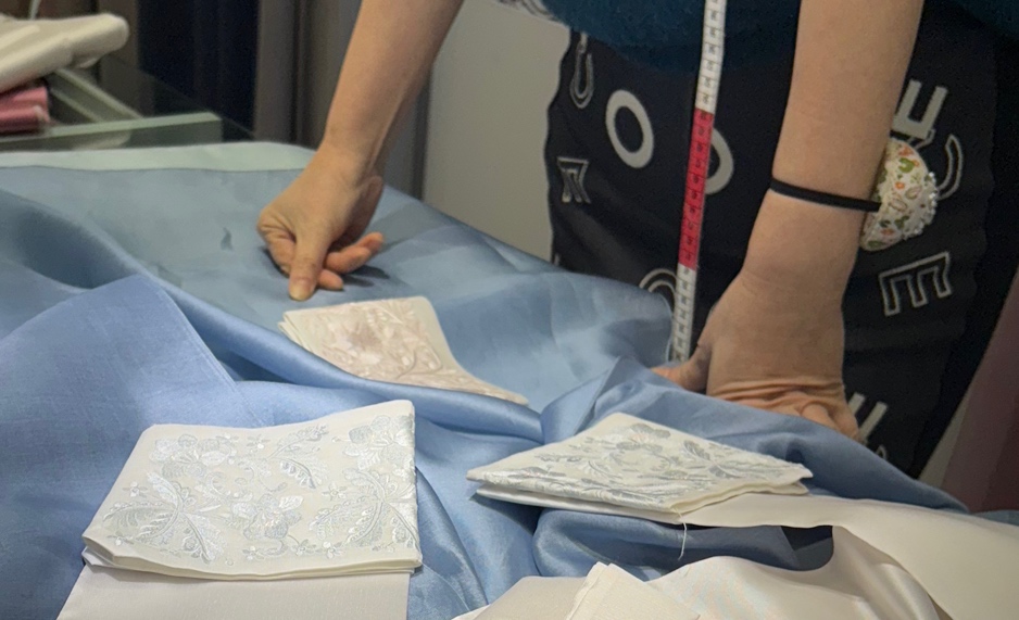 치마에 색 있는 걸 많이 한다고 추천해주셔서