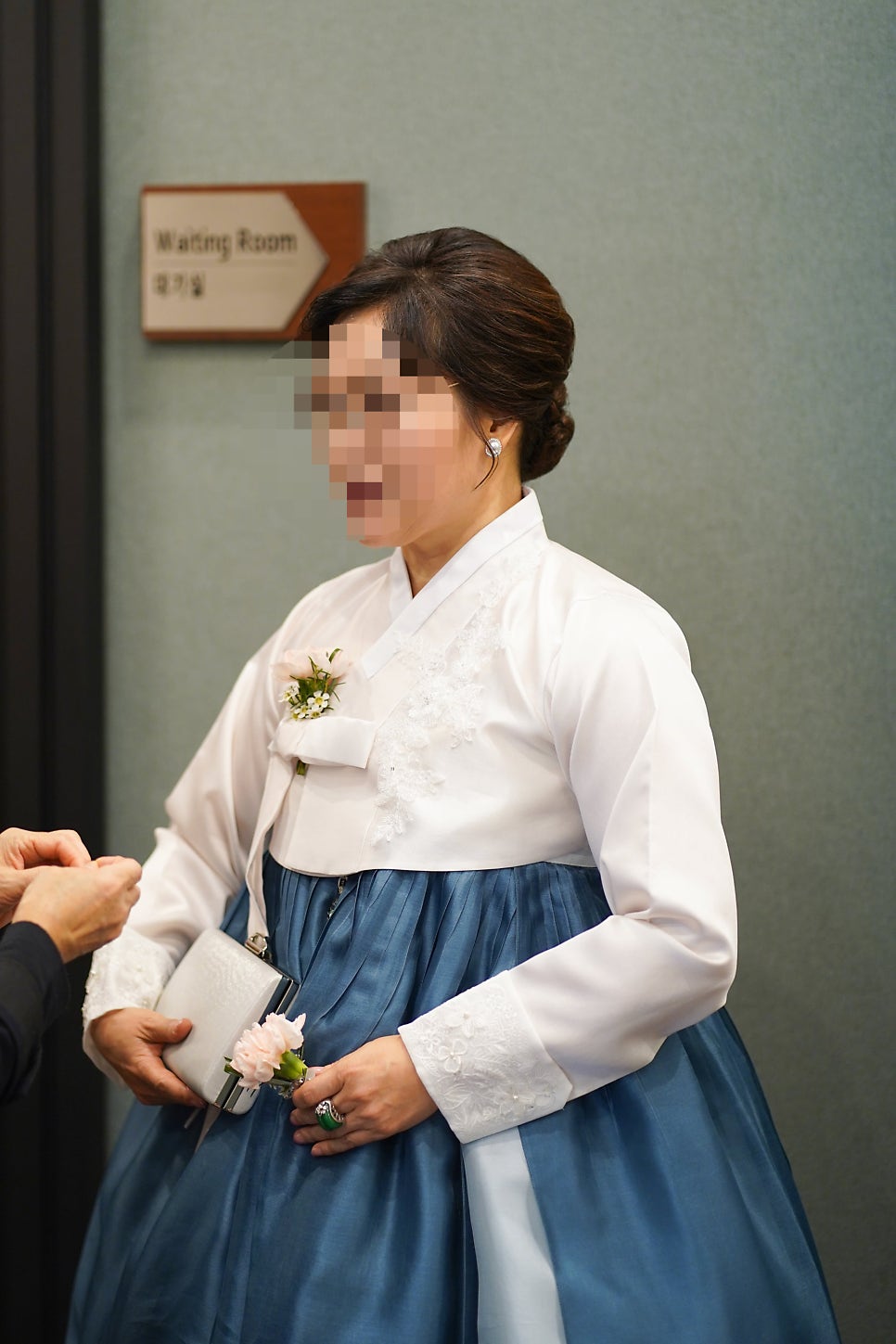 실장님께서 핀으로 꽂아주실때는 실제로 봤을 때 정말 예쁠까.. 걱정했는데 본식 당일 보니 정말 새 맞춤 한복 같았어요!!!
