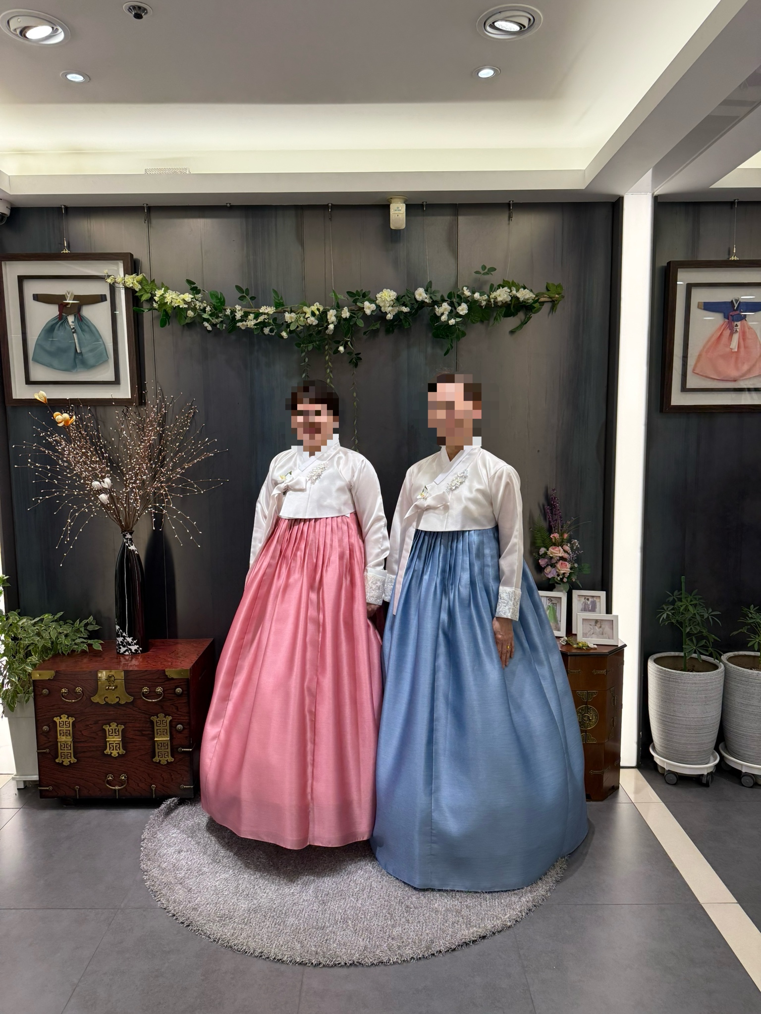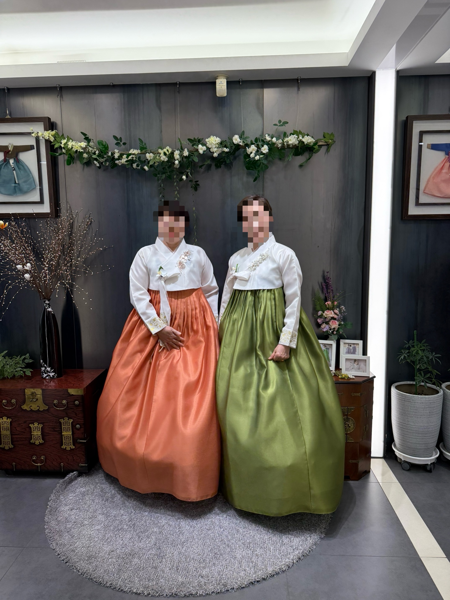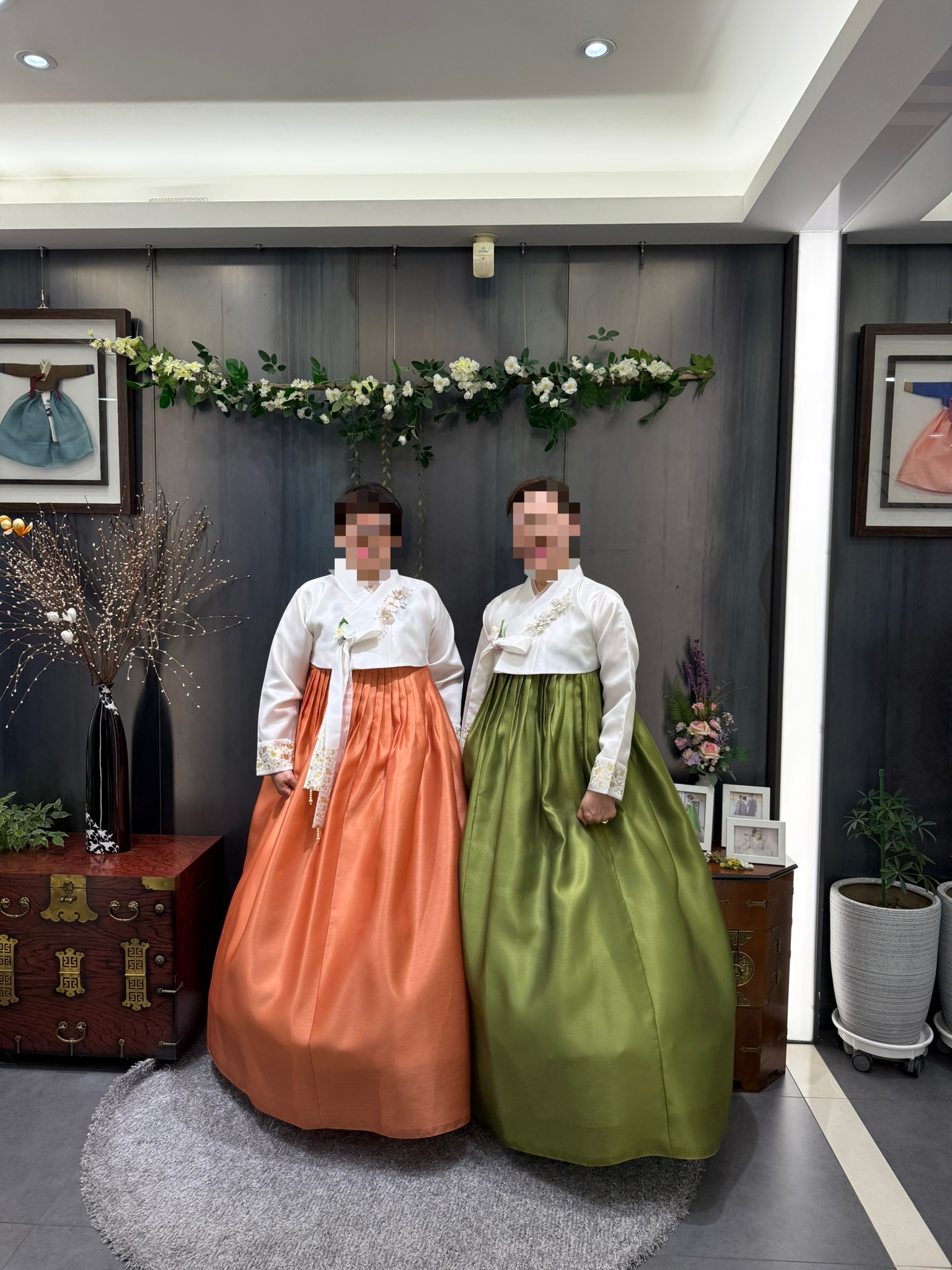 이외에도 조금 젊은 느낌의 한복 조합, 대부분의 혼주 어머님들이 입으시는 제일 무난한 조합 등 총 2~3벌을 더 입어봤는데, 충분히 예뻤으나 어머님들의 마음 속엔 2번 한복이 자리잡고 있었기에 사진을 찍진 않았어요.
