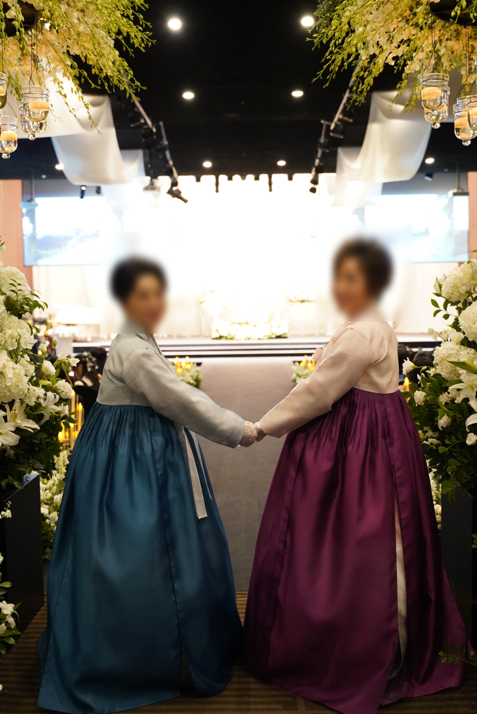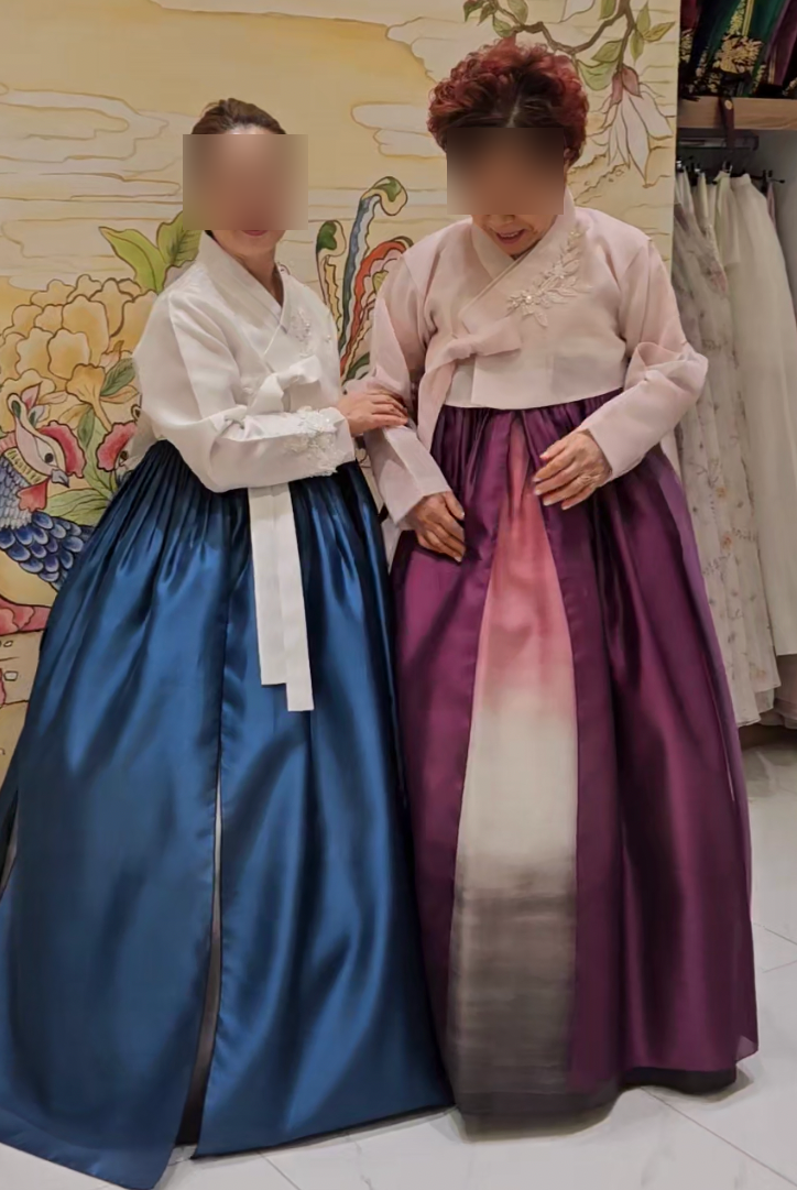 결혼을 앞두고 신부는 두 곳의 한복 대여점을 눈여겨보았습니다. 하지만 9월 27일, 베틀한복의 문을 열고 들어선 순간 우리는 더 이상의 발품이 무의미함을 깨달았습니다. 매장 안은 전통의 미와 현대적인 감각이 공존하는 우아한 공간이었고, 그곳에서 우리 양가 어머니는 각자의 모습으로 행복해하셨습니다. 신이 나서 한복 치맛자락을 대보시며 밝게 미소 짓던 신랑 어머니와, 그 곁에서 조용히 옷감의 결을 살피며 만족해하시던 신부 어머니. 두 어머니의 서로 다른 감성이 베틀한복이라는 공간 안에서 하나의 기쁨으로 합쳐지는 광경은 그 자체로 감동이었습니다.