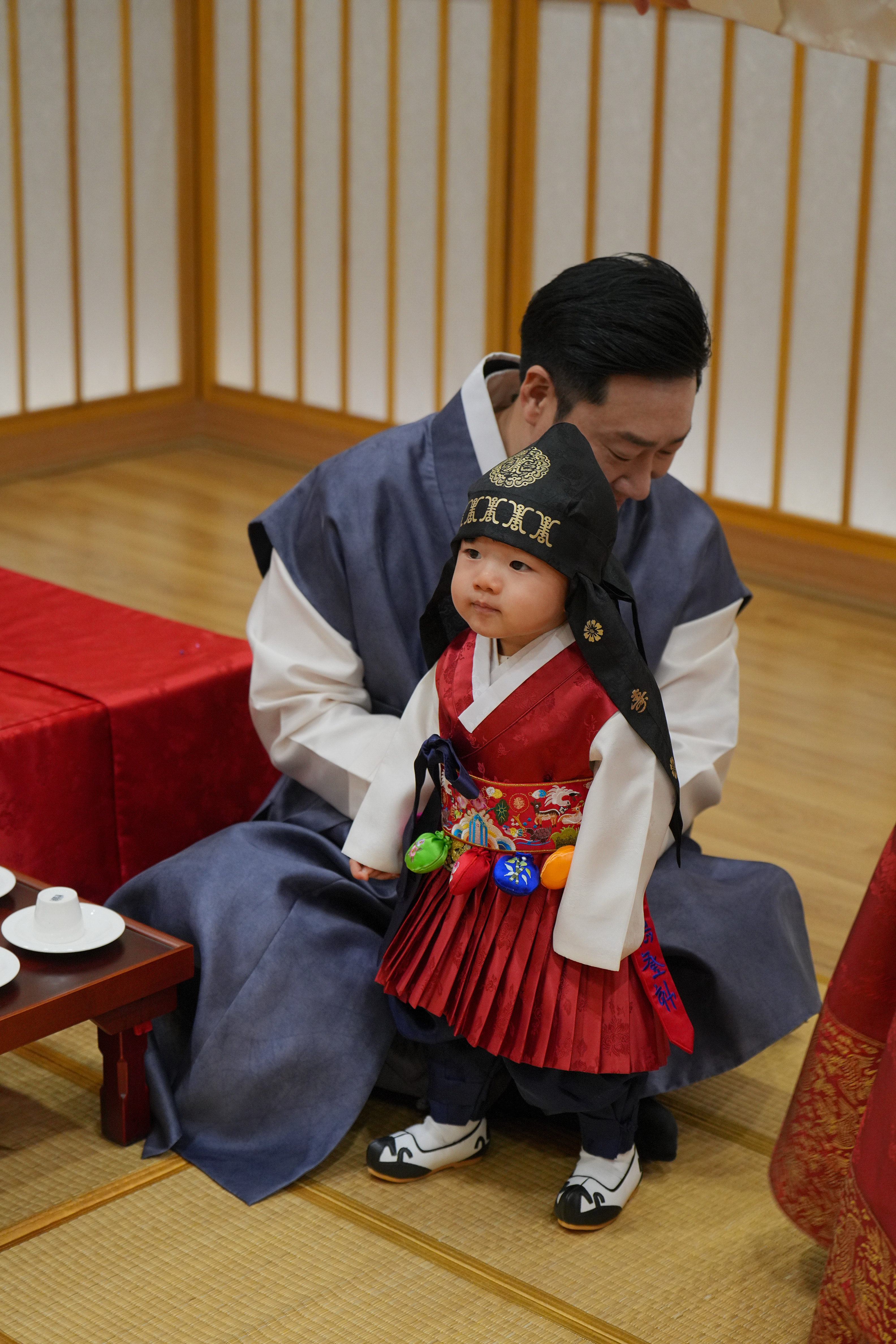 아빠는 엄마+아기 한복을 어우르는 웅장한 한복 순서로 선택하게해주셨어요
