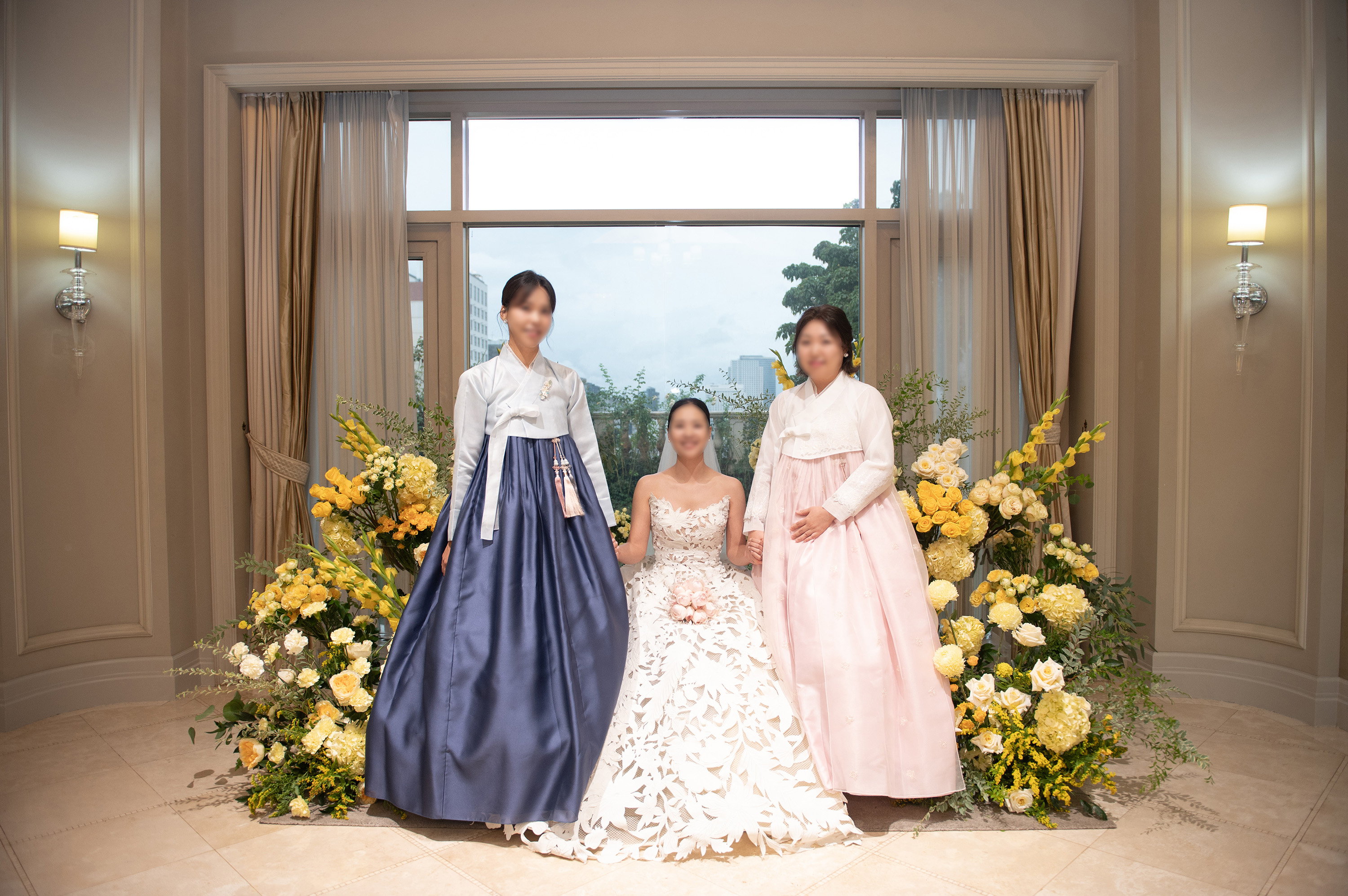 사실 막내 결혼식에 외국인 하객이 많고 언니들이 축사를 하기로 했어서 한국의 미를 보여주고 싶었던것도 있고 해서 한복을 입었는데요.
