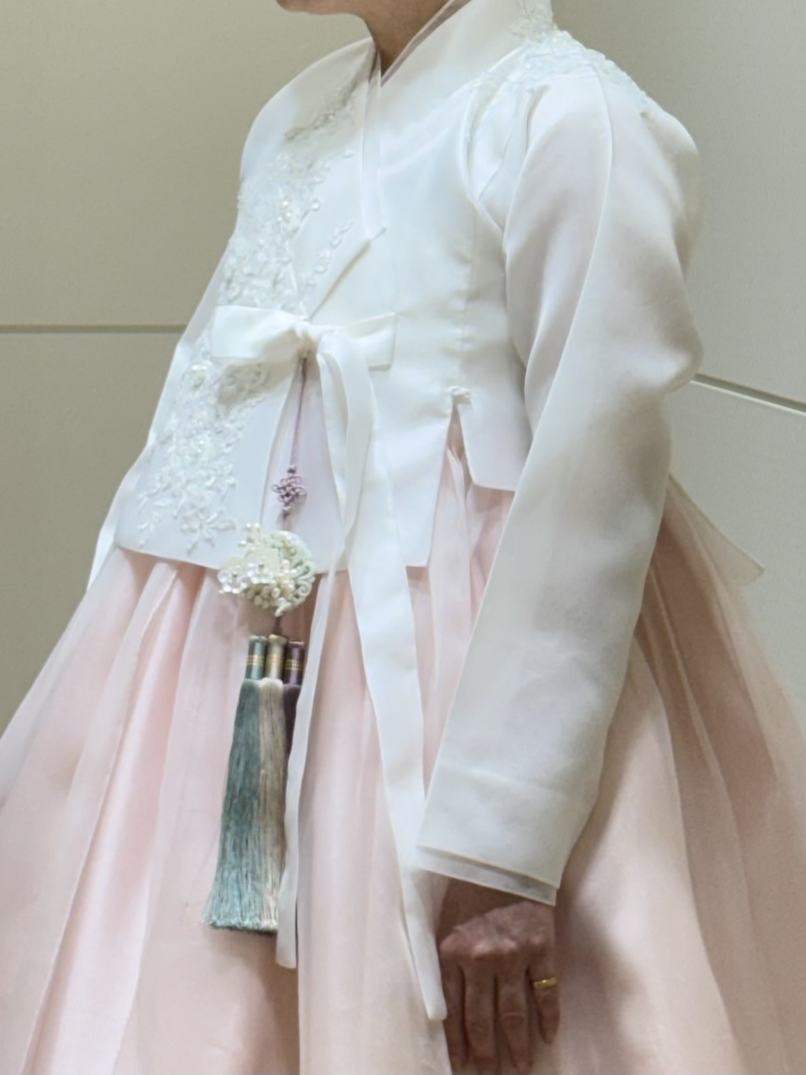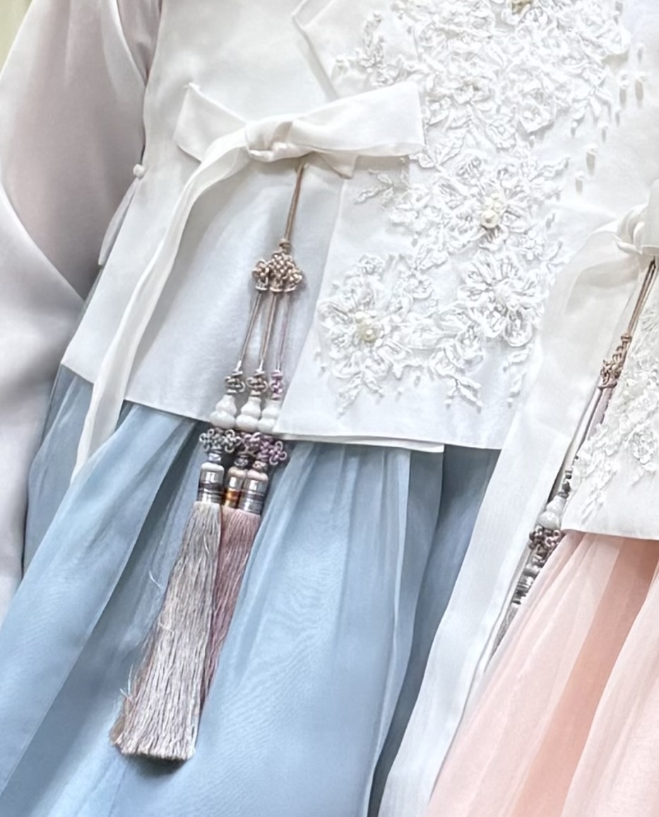 밋밋해 보일 수 있는 부분은 비즈, 브로치, 노리개로 포인트를 주고 전체 컬러 매치도 정말 노련하게 잡아주셨어요