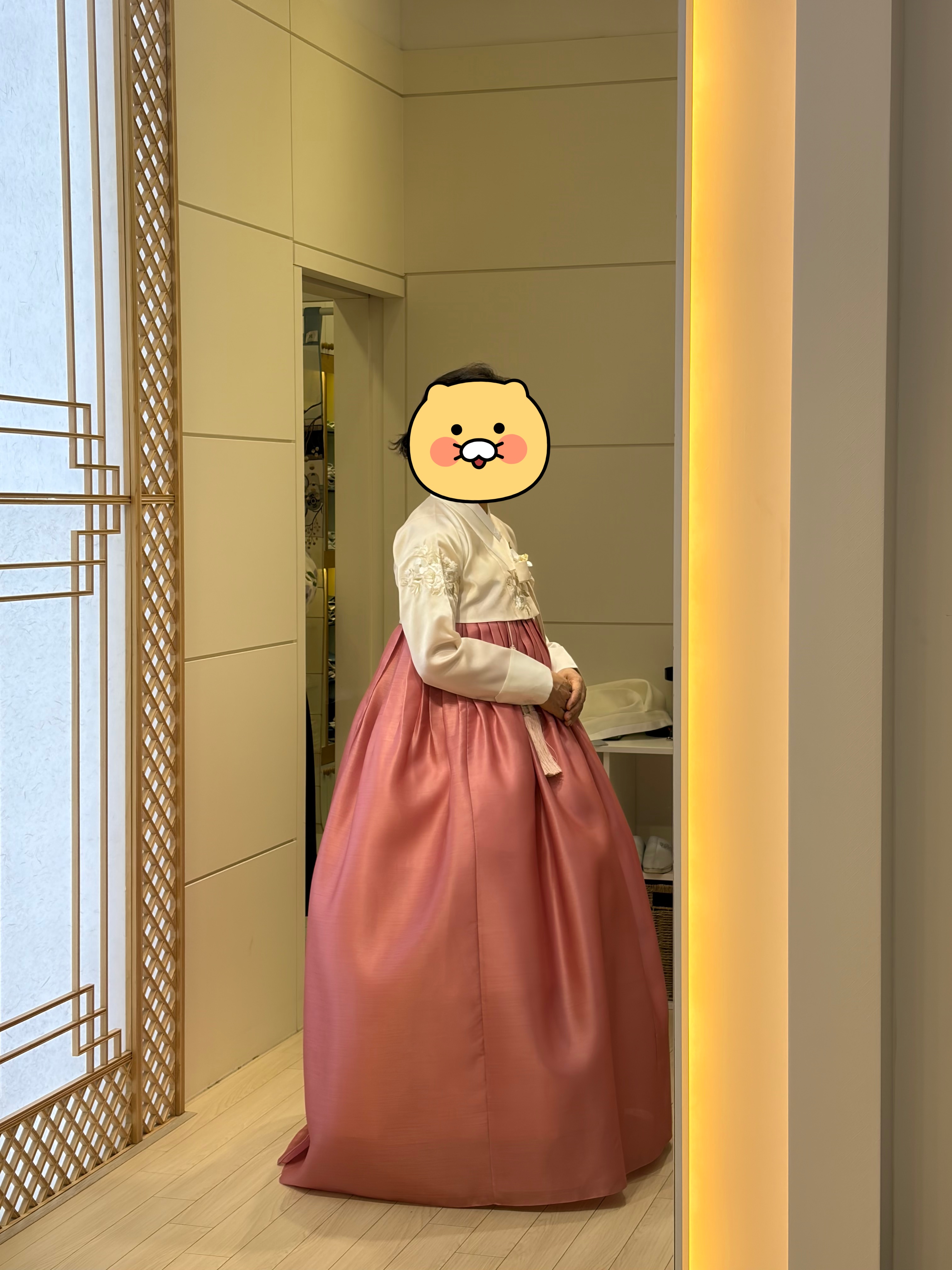전체적으로 매장 분위기가 편안해서 긴장하지 않고 피팅할 수 있었고, 직원분들 응대도 친절하고 부담스럽지 않았습니다. 무엇보다 장모님께서 피팅 과정과 한복 모두에 만족하셔서 피팅 당일 바로 계약을 결정하게 되었습니다. 웨딩홀 제휴 혜택으로 피팅비 없이 진행했고, 15% 할인까지 적용받을 수 있어 비용적인 부분에서도 만족스러웠습니다.