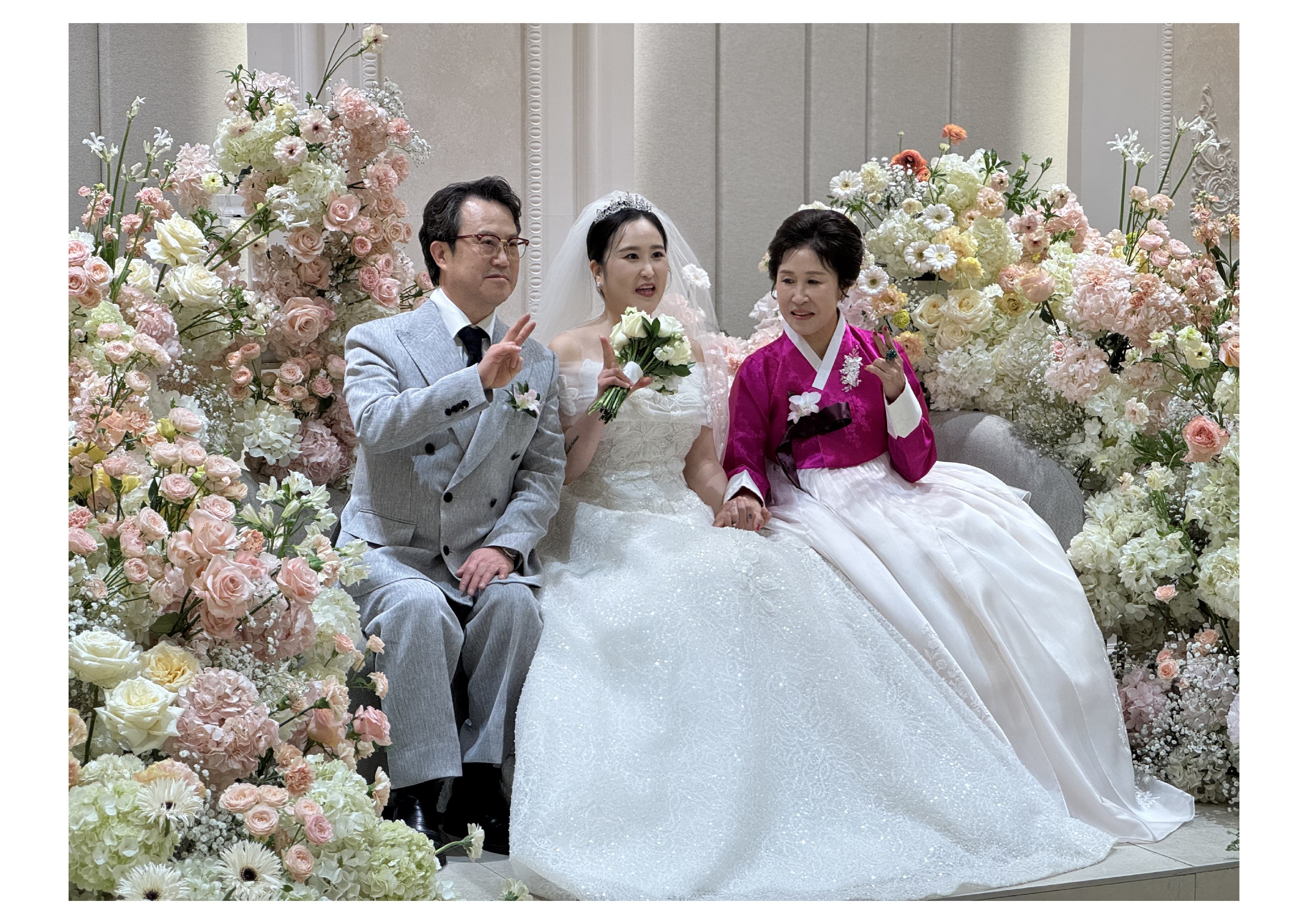 저는 뭐하러 딸아들의 결혼식에서까지 구지 튀려고 안달났냐..하는 속생각이 절로 나는 핫핑크였는데요. 게다가 상대방은 찐파랑이거나 찐컬러야 된다네요~