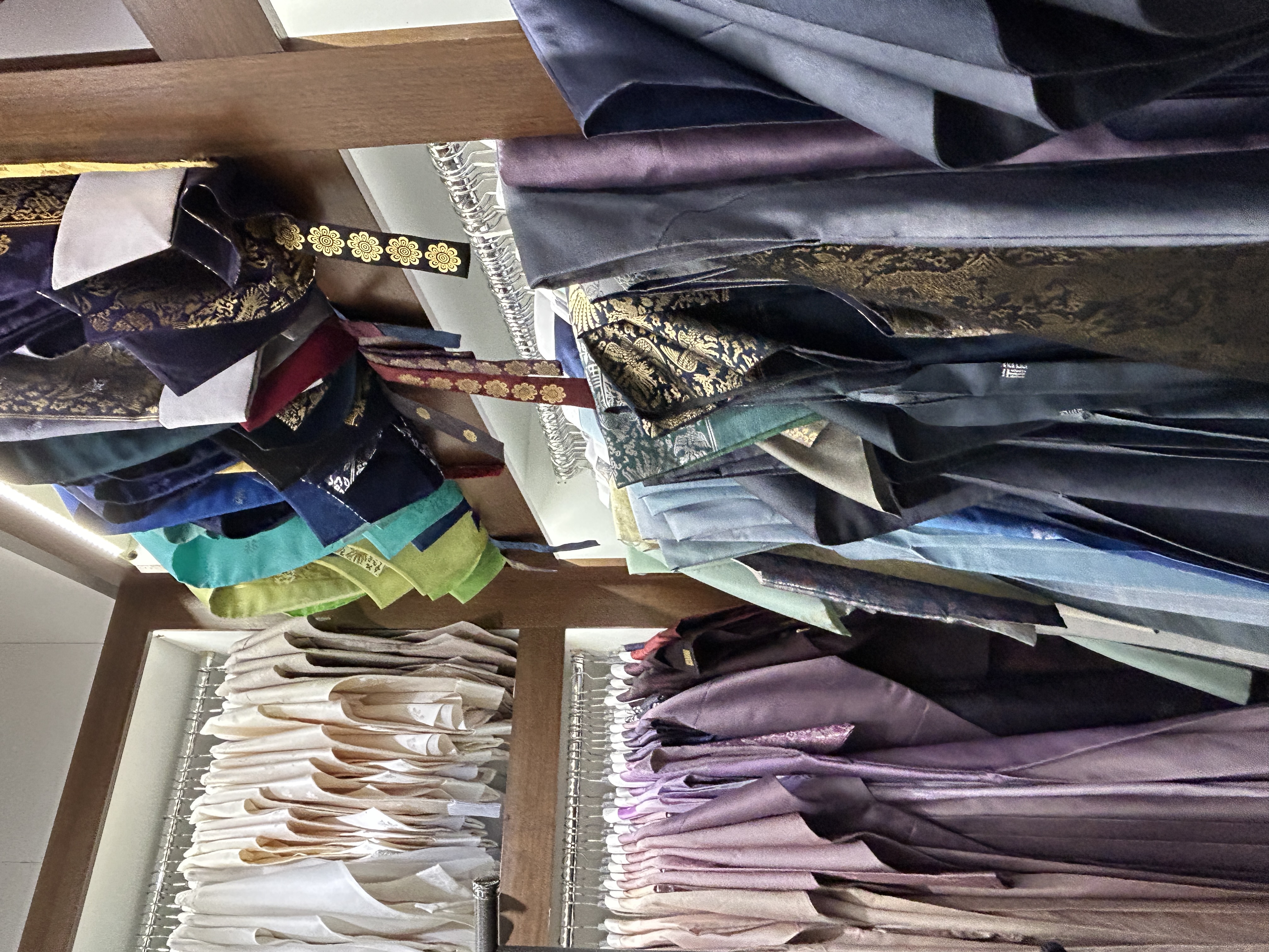 먼저 매장에 들어갔을 때 느껴지는 분위기가 굉장히 고급스럽고 차분했습니다. 혼주 한복을 준비하러 온 만큼 조금은 긴장된 마음이 있었는데, 매장 분위기가 편안하면서도 정돈되어 있어서 부모님도 부담 없이 한복을 둘러볼 수 있었습니다. 매장 전체가 깔끔하게 관리되어 있고 한복들이 가지런히 정리되어 있어 고급스러운 느낌이 자연스럽게 느껴졌습니다.