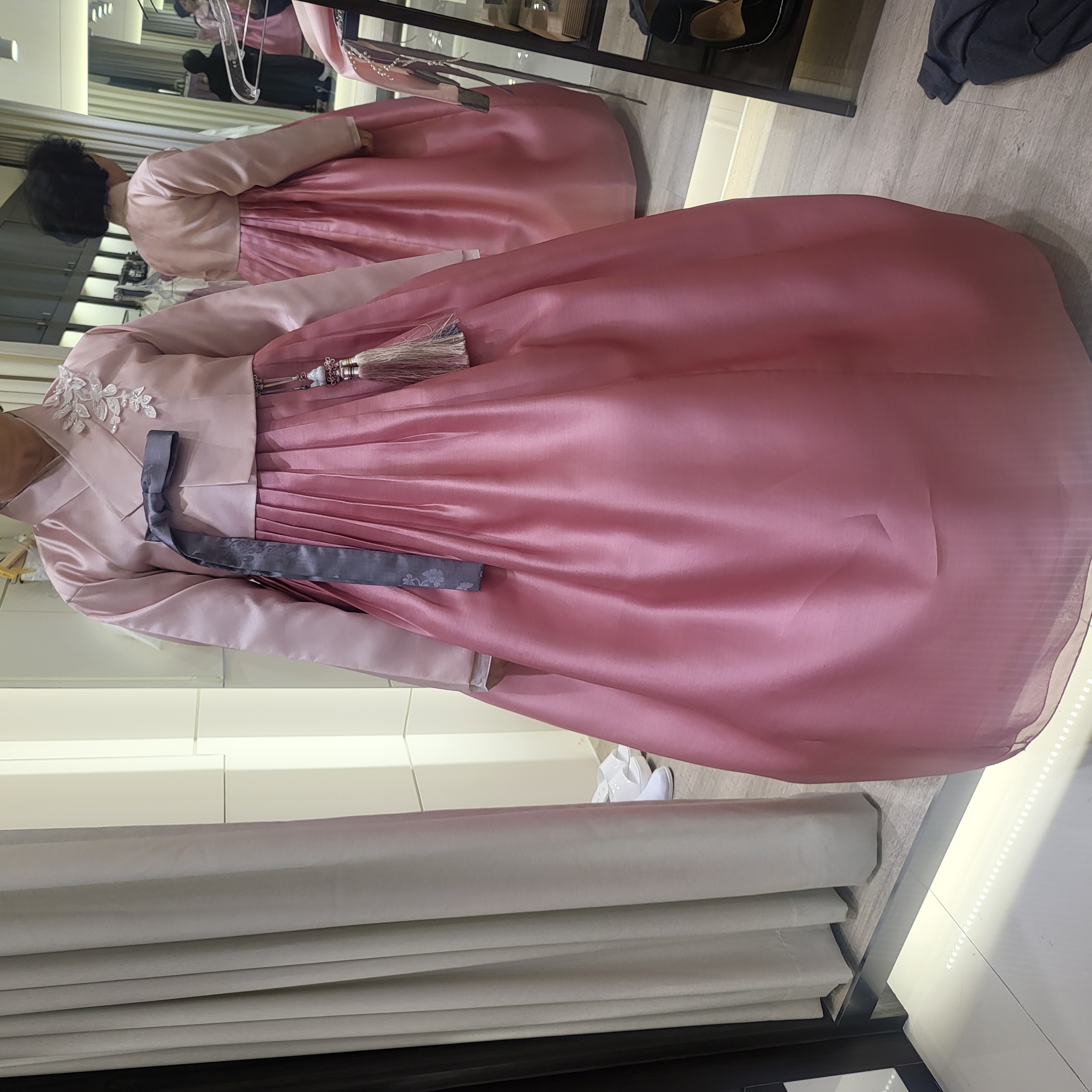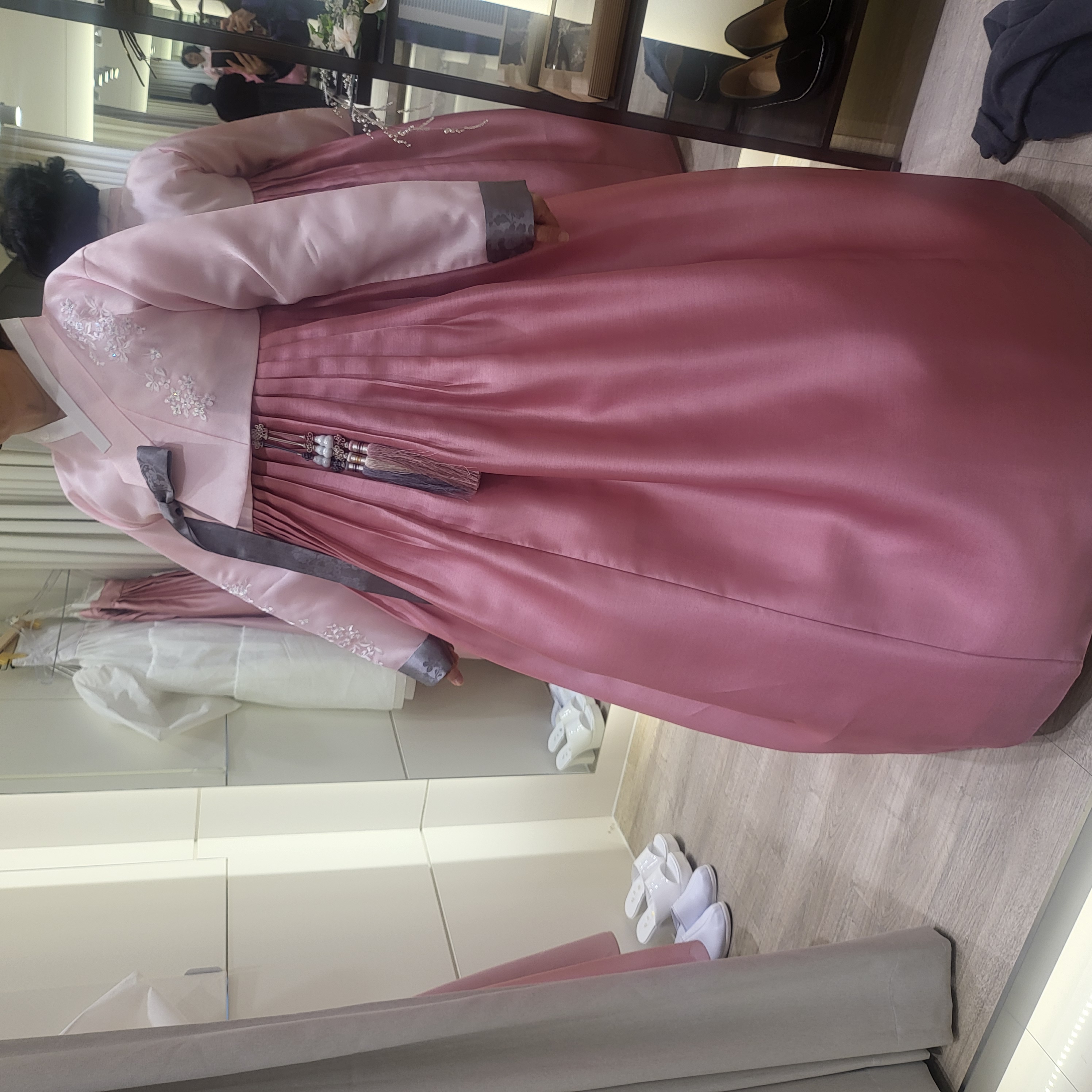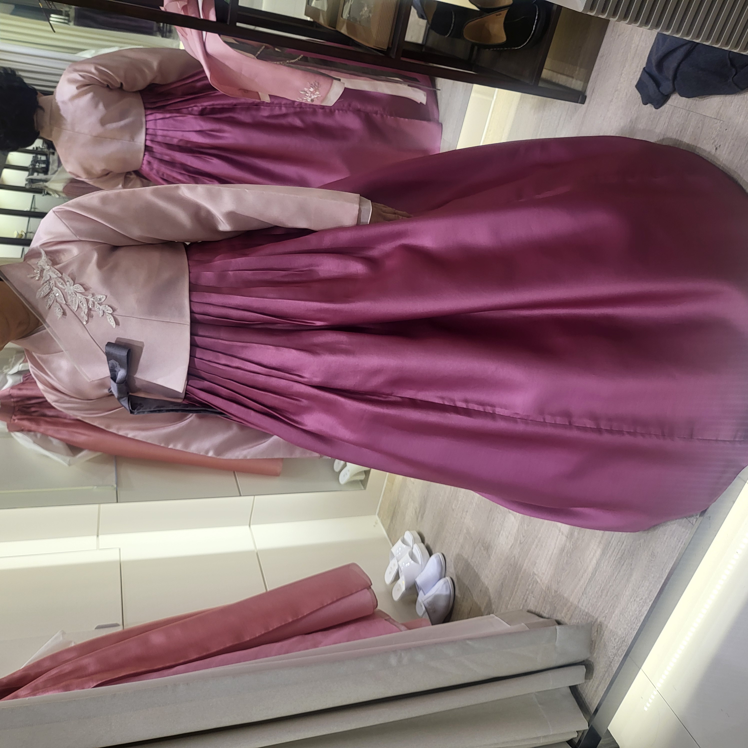매장에는 생각보다 훨씬 다양한 디자인과 색상의 한복이 준비되어 있어서 선택의 폭이 넓었고, 원하는 색상을 말씀드리면 바로 어울리는 한복을 매칭해주실 정도로 경험이 많아 보였습니다. 혼주한복이다 보니 연령대에 맞는 분위기와 예식장 분위기까지 고려해서 추천해주신 점도 정말 좋았습니다. 또한 제 본식 드레스와도 전체적인 색감이 잘 어울리는지까지 세심하게 봐주셔서 더욱 만족스러웠습니다.