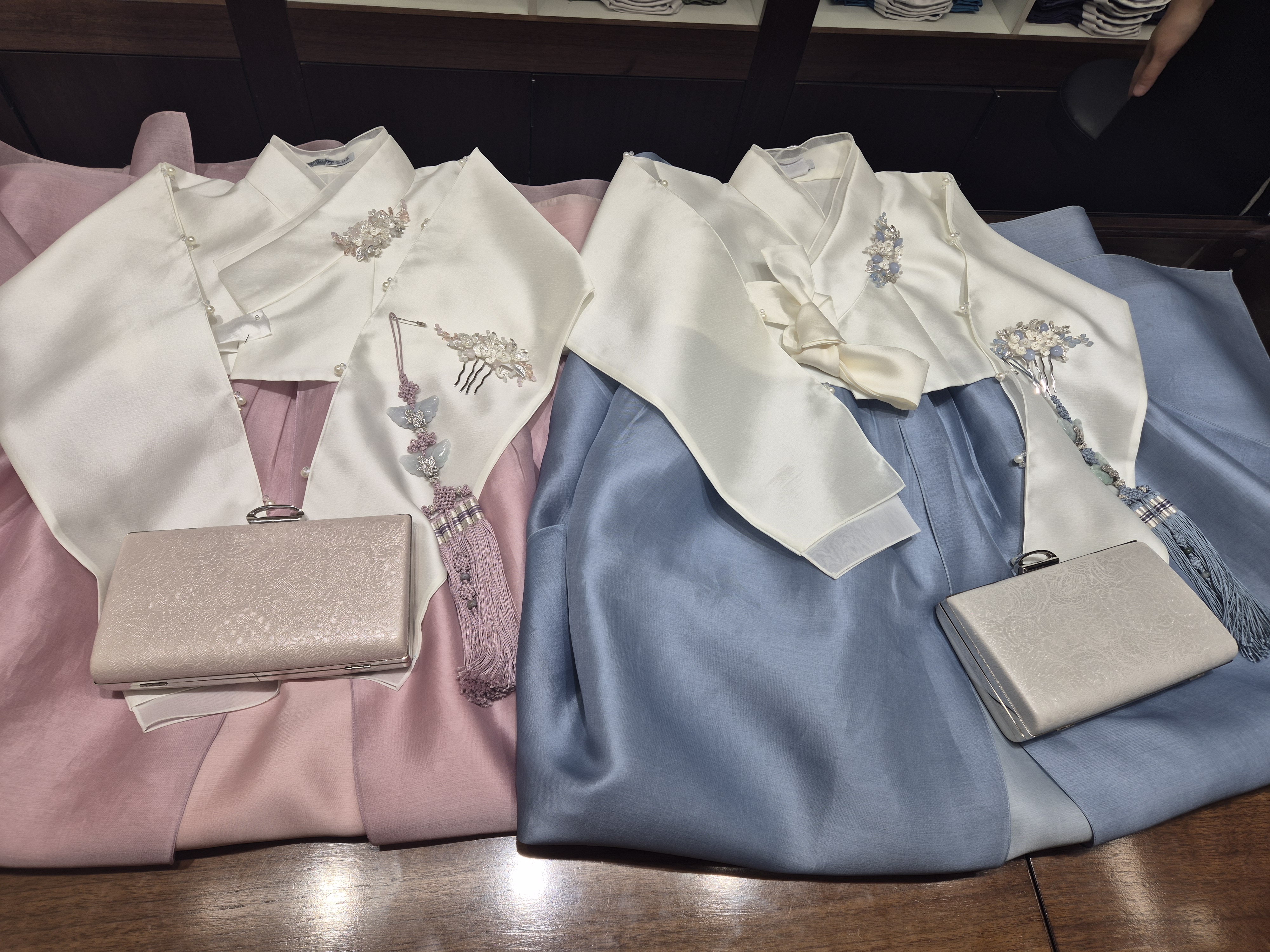 피팅할 한복을 몇 벌을 가져다 주셨는데